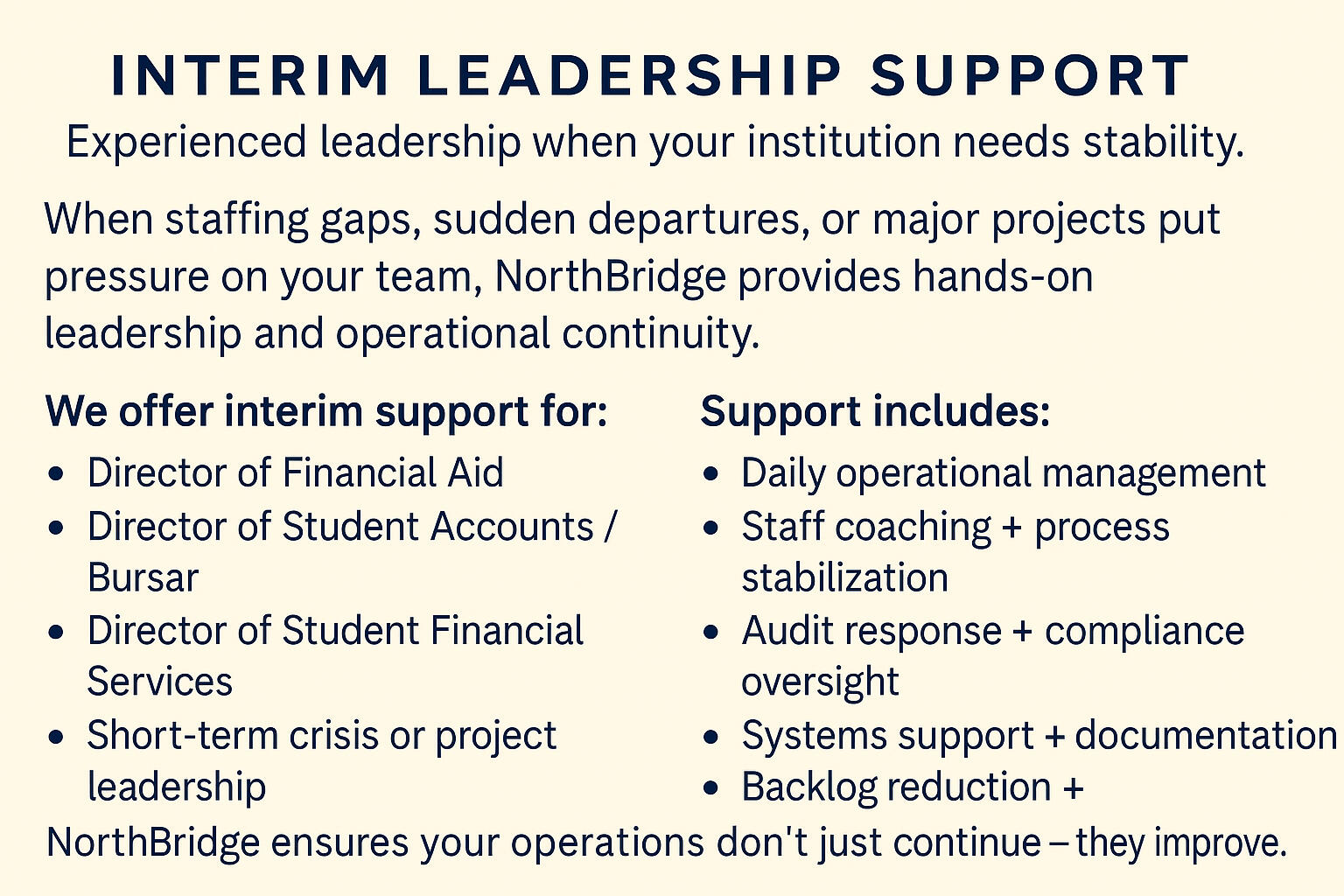 Led by Dr. Eliezer Vilanova Jr., NorthBridge brings deep expertise in:- Financial aid strategy and modeling
